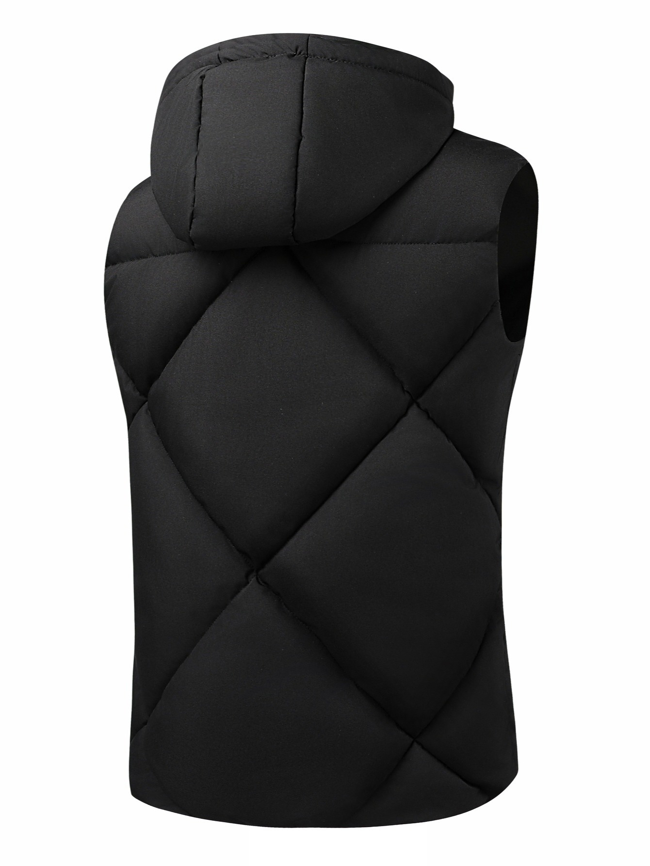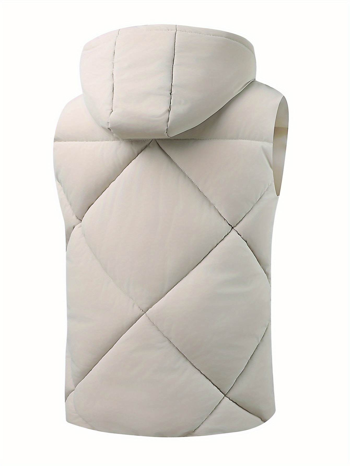 Men'S Classic Warm Padded Sleeveless Vest with Stand Collar - Quilted Waistcoat Jacket, Zipper Closure, Polyester, Solid Color, Regular Fit for Fall/Winter Casual & Sports Wear, Winter Jacket, Quilted Design, Durable Construction