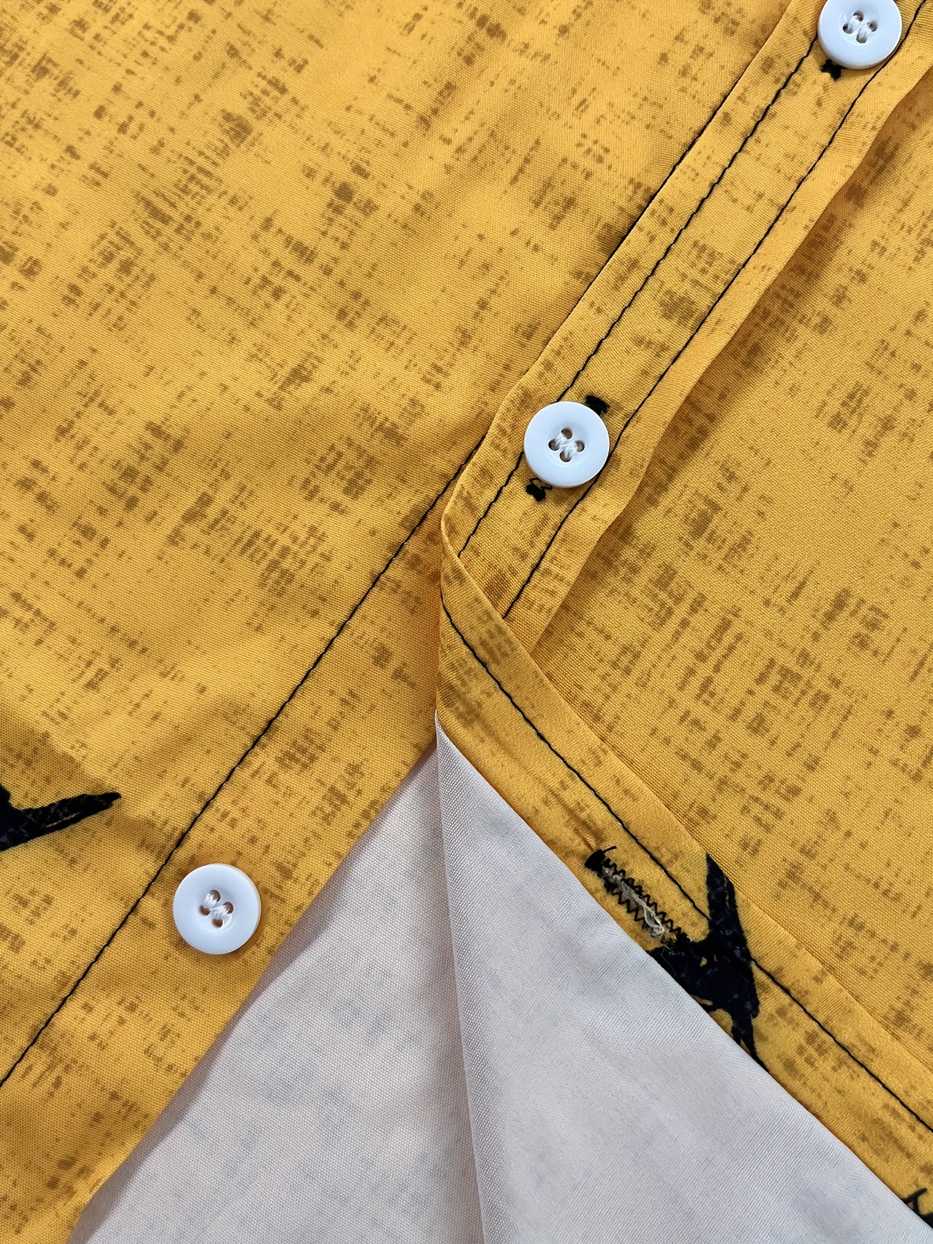 Men's Lightweight Shirt - Black & Mustard-Yellow Geometric Cat Art Print Button-Up - Stand-Up Collar Casual Beach Vacation Outfit - Machine Washable Summer Blouse for Everyday & Formal Events, Beach Clothes, Nontransparent Fabric