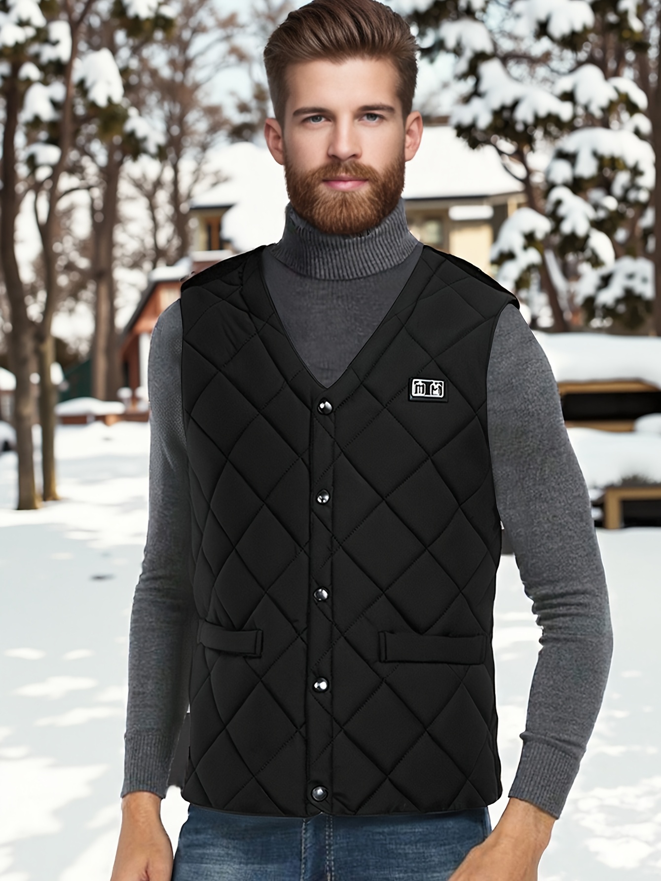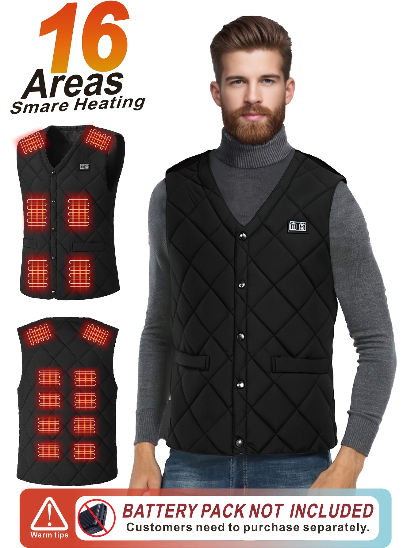 Men'S Autumn/Winter Warm Vest - 16 Zone Dual Control Temperature, 3-Speed Adjustable V-Neck Jacket with Pockets, Polyester for Outdoor & Casual Wear, Warm Vest