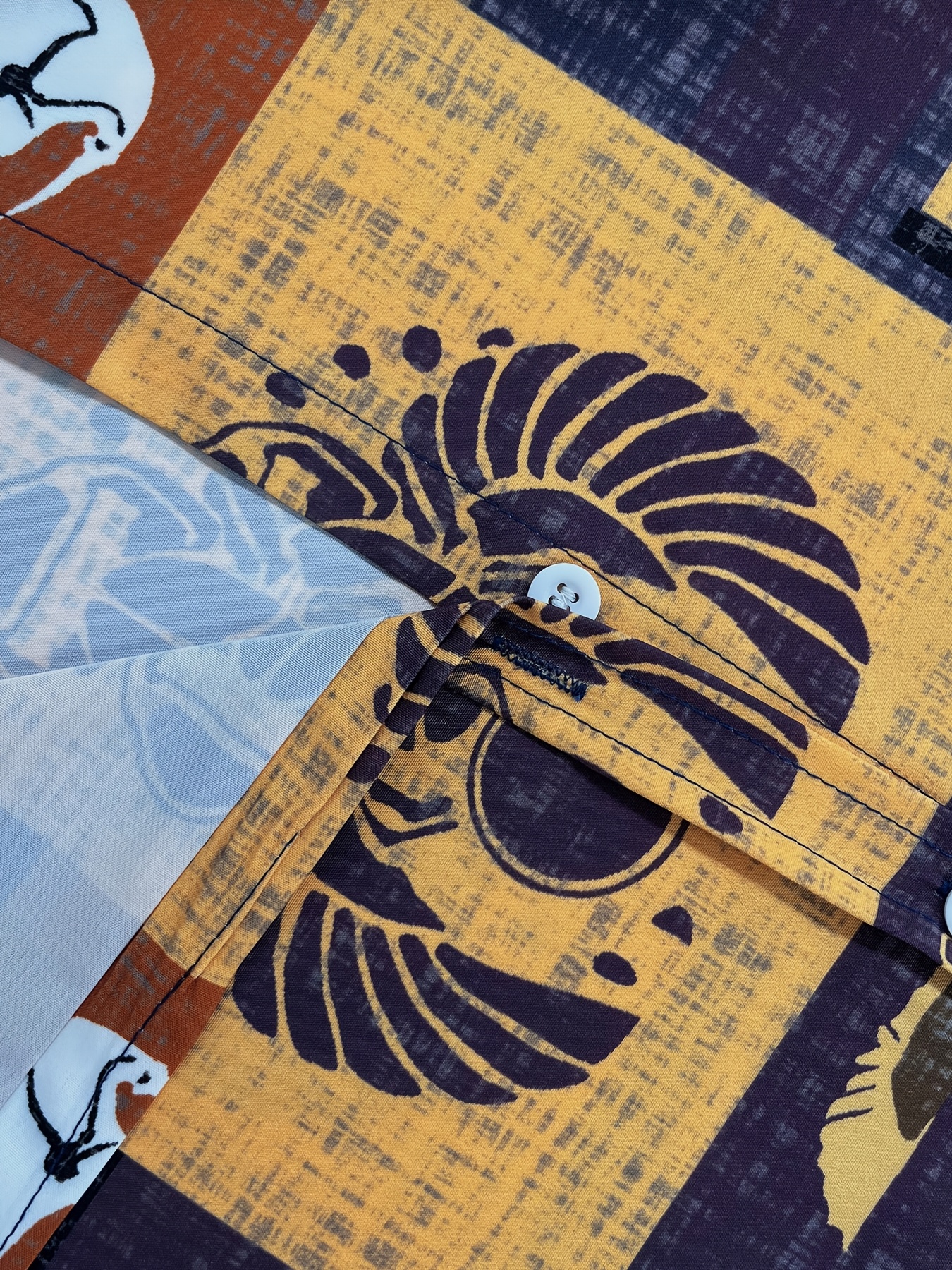 Men'S Vintage Egyptian-Inspired Geometric Art Print Short Sleeve Shirt - Casual Stand Collar, Button-Up, Non-Stretch Fabric, Regular Fit for Summer Outdoor & Casual Attire, All-Season Comfort, Summer Casual Wear | Artistic Print Shirt | Nonstretch F