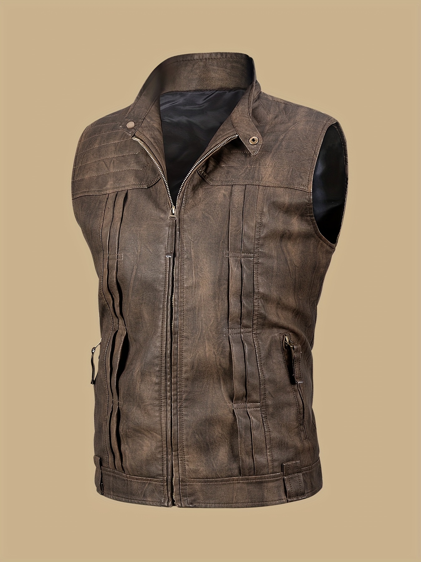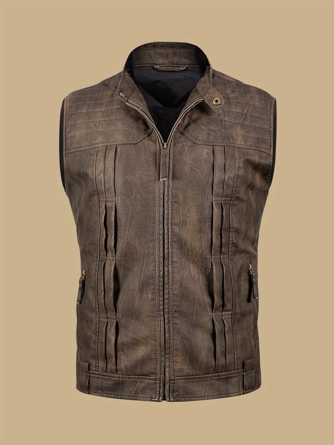 [Vintage Style Vest] Lightweight Vintage-Style Men's Vest | Zipper, Stand Collar, Chest Pockets | Casual Streetwear Outerwear for All Seasons