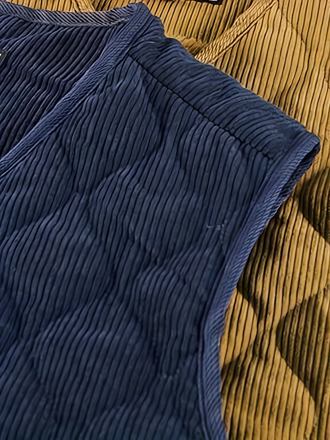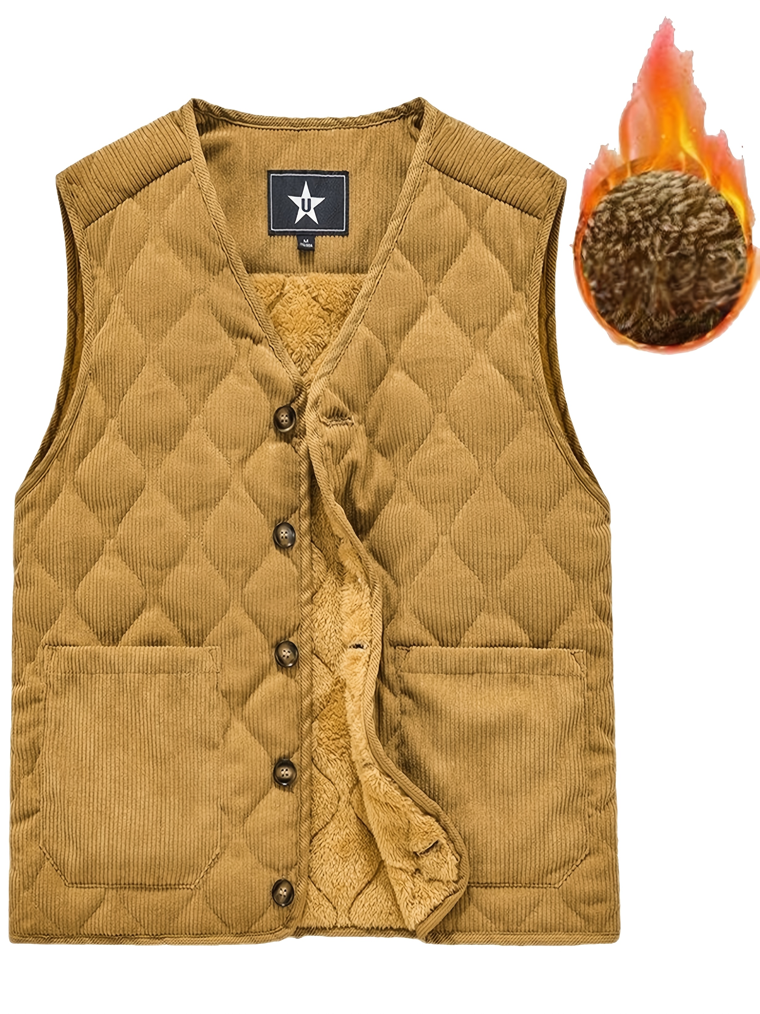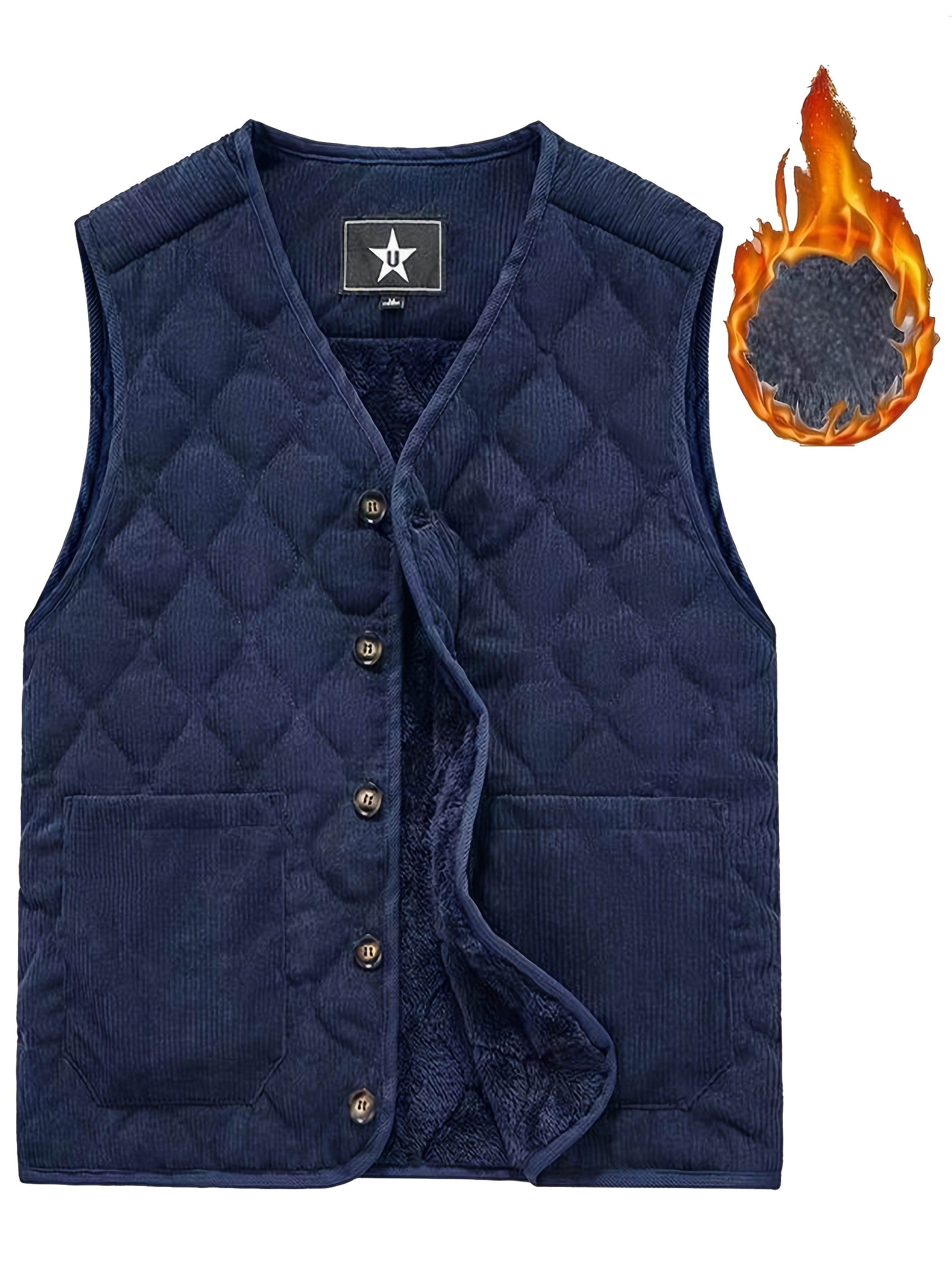 [Winter Warmth Vest] Navy Blue Quilted Corduroy Men's Winter Warmth Vest | Fleece Lining, Pockets, Button Closure | Perfect for Fall and Winter Comfort