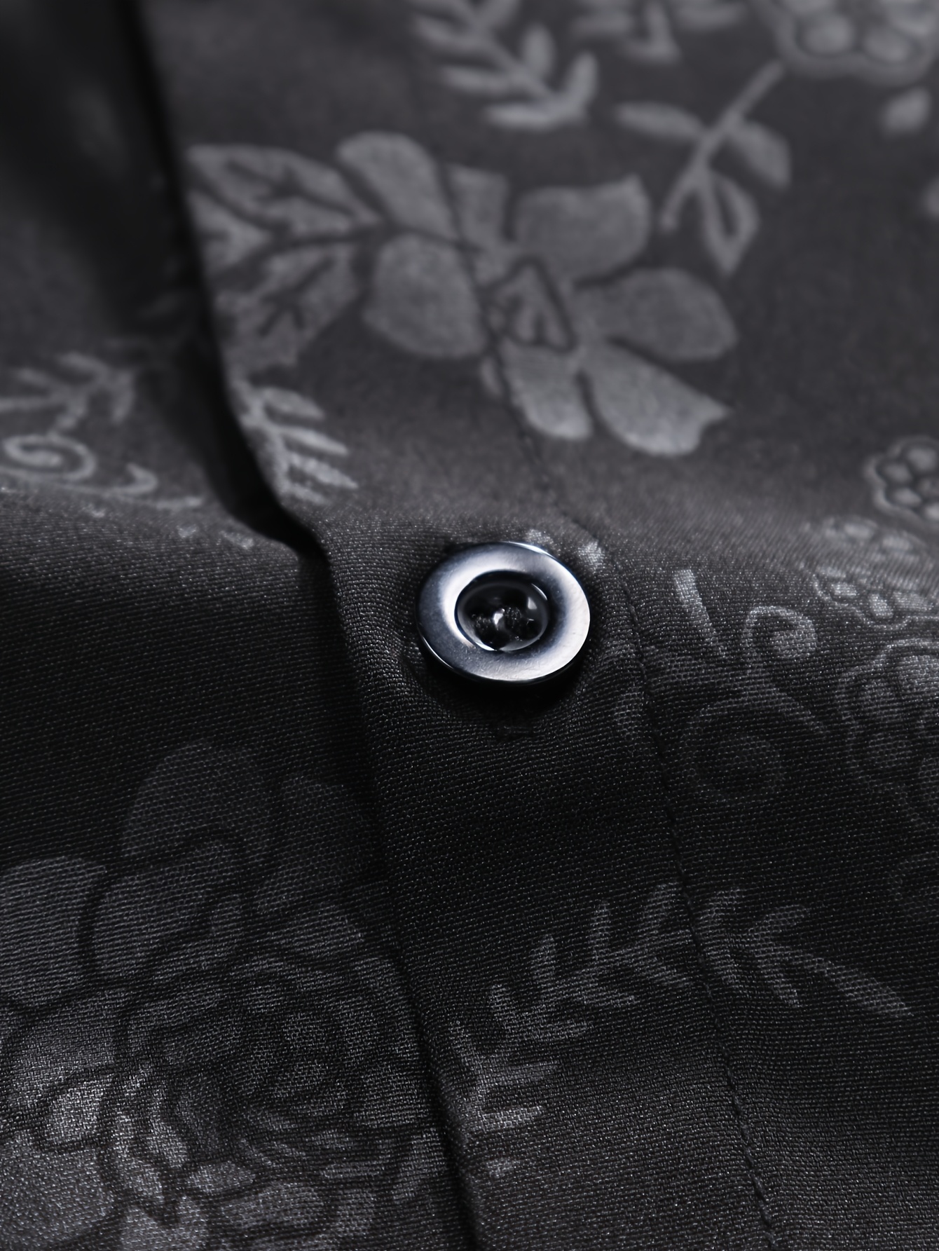 [Floral Shirt] Men's Lightweight Summer Casual Short Sleeve Shirt with Stylish Floral Print, Black & White Design, Polyester Blend, Perfect for Casual Attire, Short Sleeve Tops