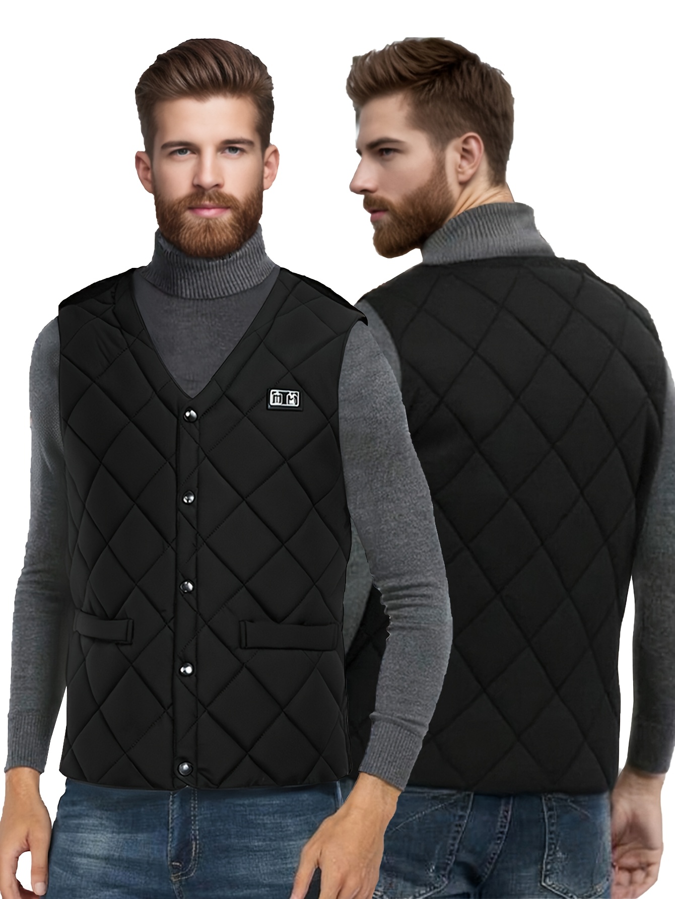 Men'S Autumn/Winter Warm Vest - 16 Zone Dual Control Temperature, 3-Speed Adjustable V-Neck Jacket with Pockets, Polyester for Outdoor & Casual Wear, Warm Vest