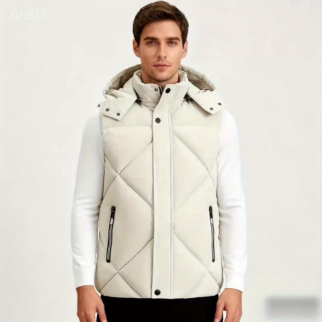 Men'S Classic Warm Padded Sleeveless Vest with Stand Collar - Quilted Waistcoat Jacket, Zipper Closure, Polyester, Solid Color, Regular Fit for Fall/Winter Casual & Sports Wear, Winter Jacket, Quilted Design, Durable Construction
