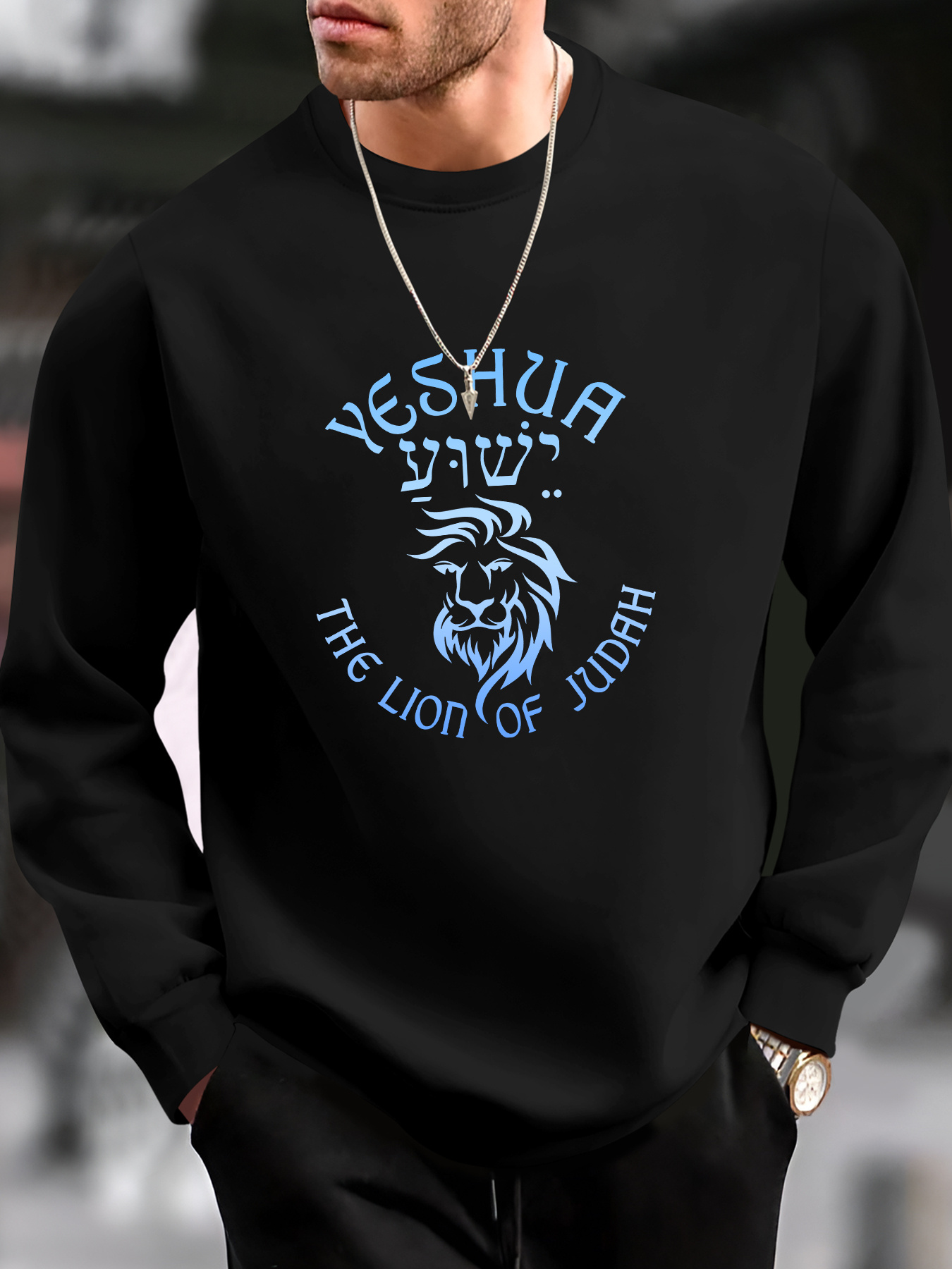 Men's Graphic Print Sweatshirt - Yeshua Lion of Judah Regular Fit Crew Neck Pullover with Slight Stretch, Polyester Knit Fabric