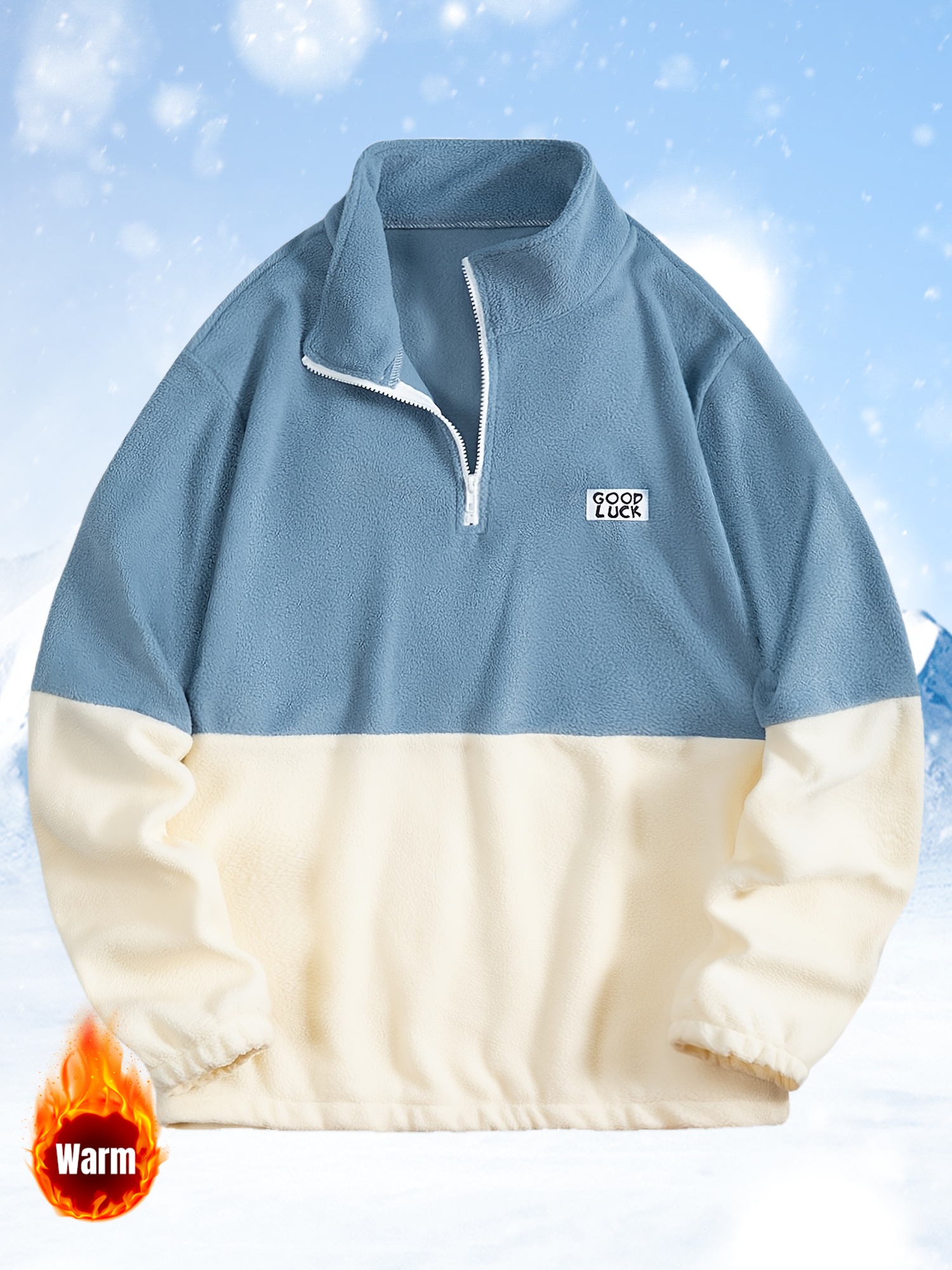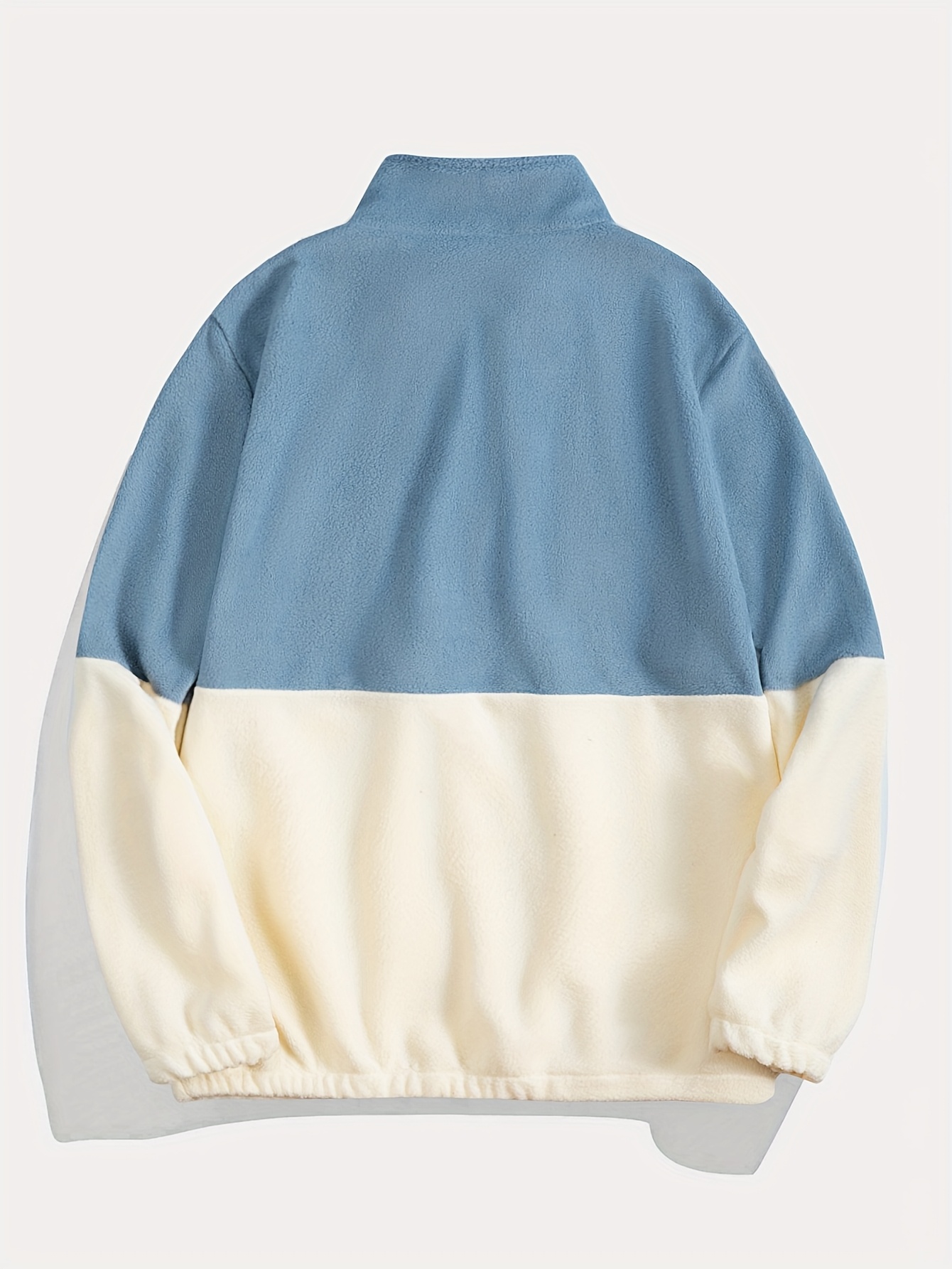 Men'S Casual Geometric Color Block Fleece Sweatshirt Jacket, Polyester Knit Fabric, Regular Fit, with High Neck and Medium Stretch, for All-Season Pullover