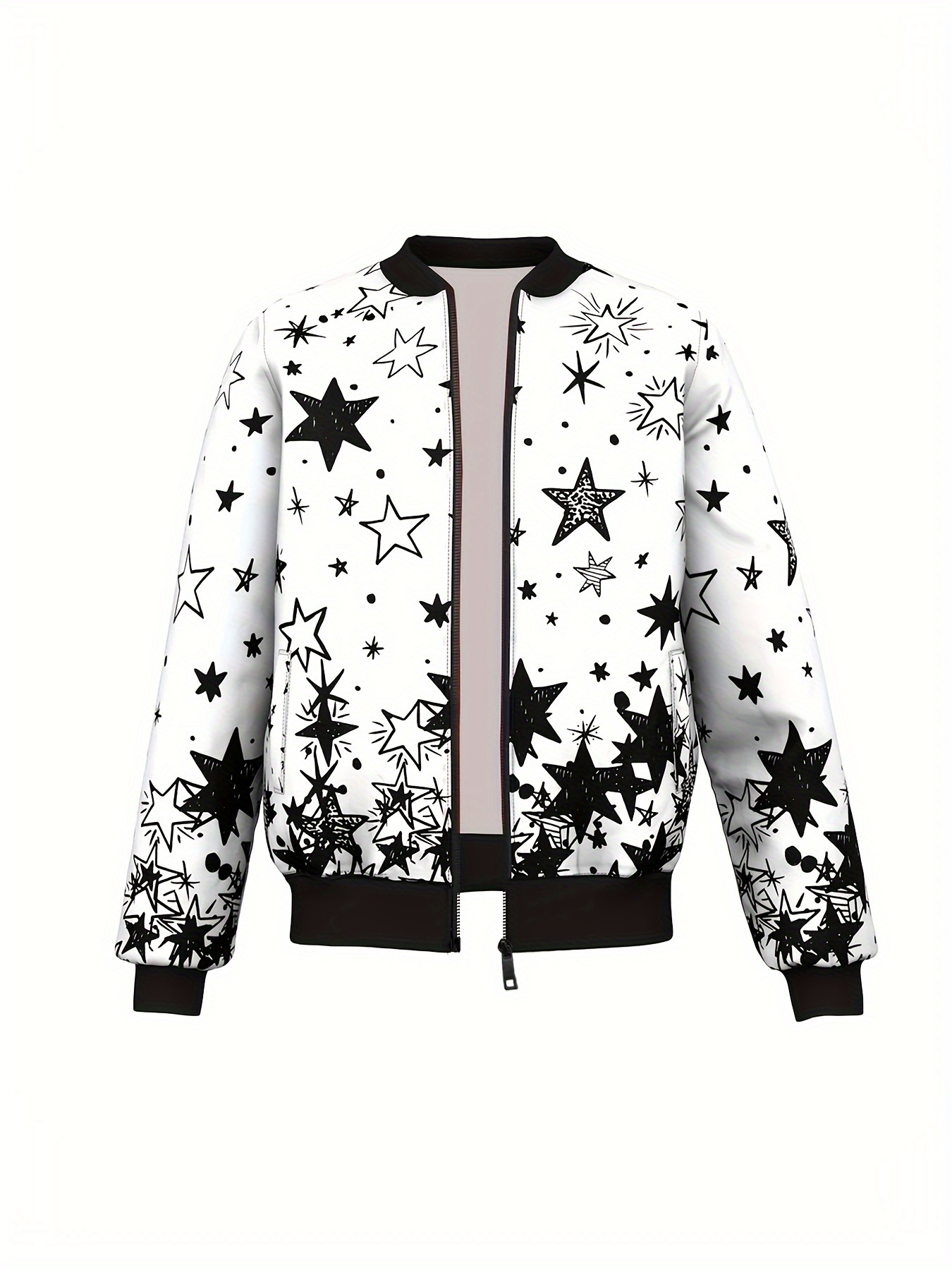 Men's Sporty Starry Sky Print Jacket - Polyester, Zip-Up Baseball Collar with Pockets, Machine Washable - Perfect for Spring/Fall
