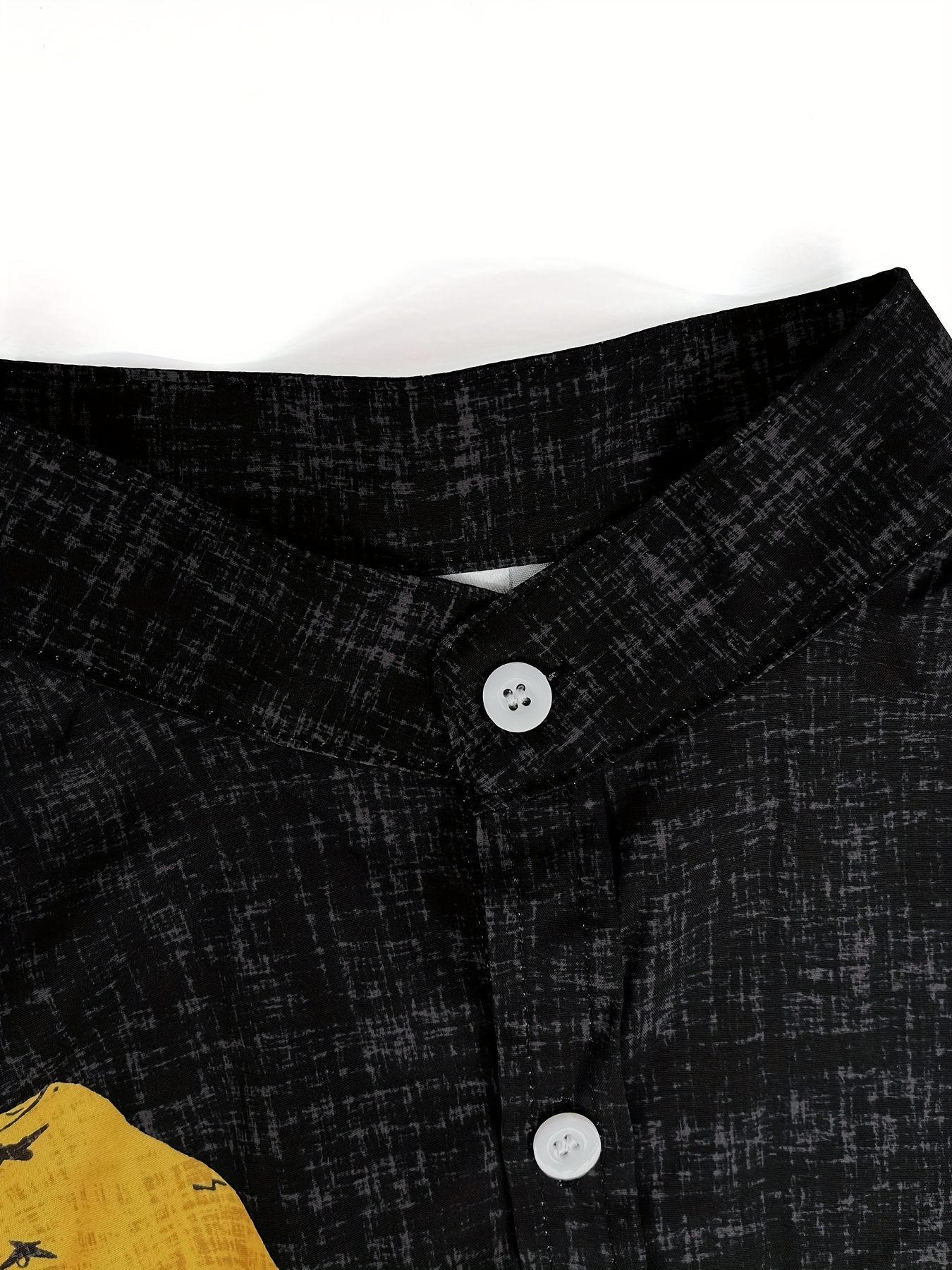 Men's Lightweight Shirt - Black & Mustard-Yellow Geometric Cat Art Print Button-Up - Stand-Up Collar Casual Beach Vacation Outfit - Machine Washable Summer Blouse for Everyday & Formal Events, Beach Clothes, Nontransparent Fabric