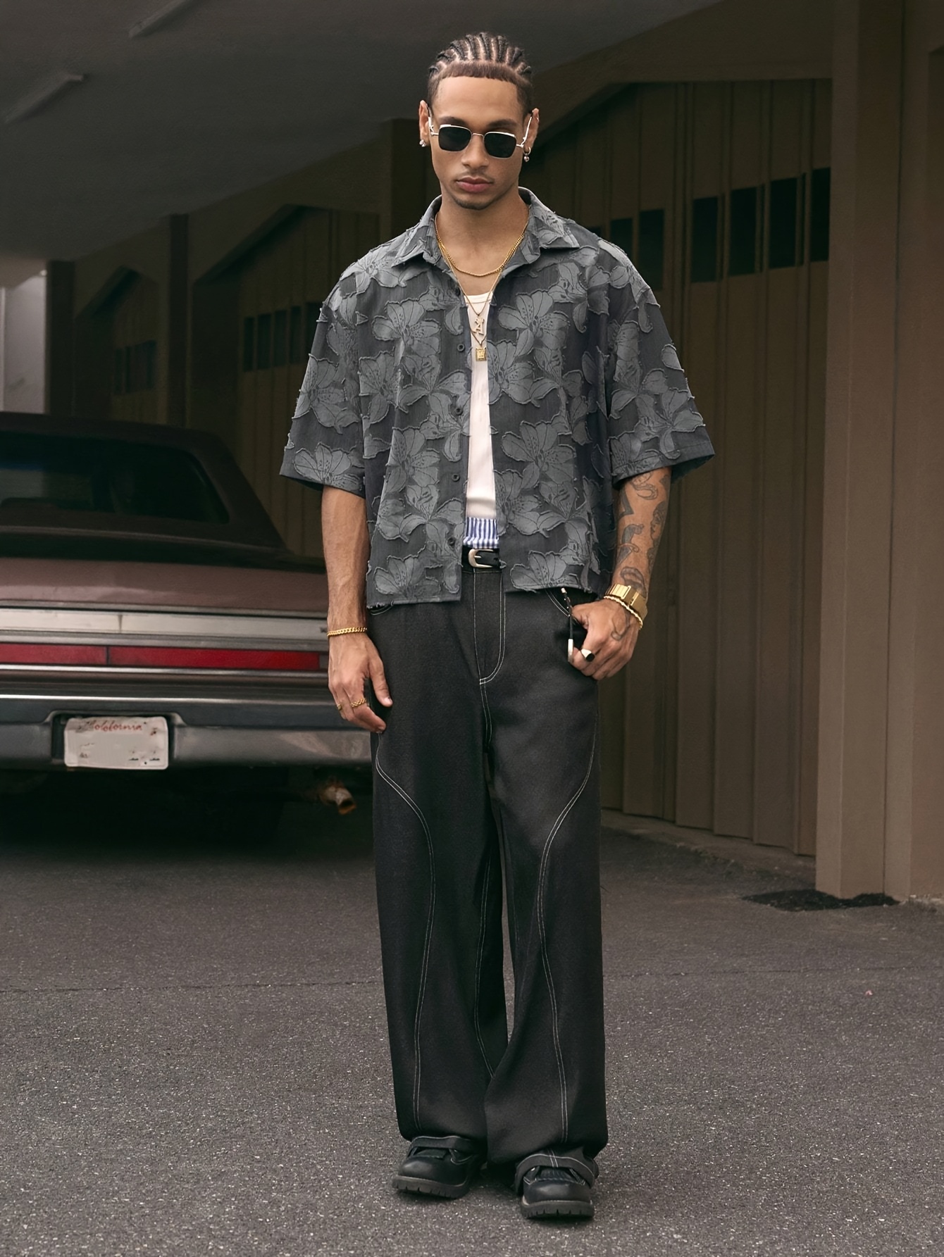 Men's Non-Stretch Button-Up Shirt - Loose Fit Streetwear Blouse, Machine Washable Formal Casual Outfits for Everyday & Special Events