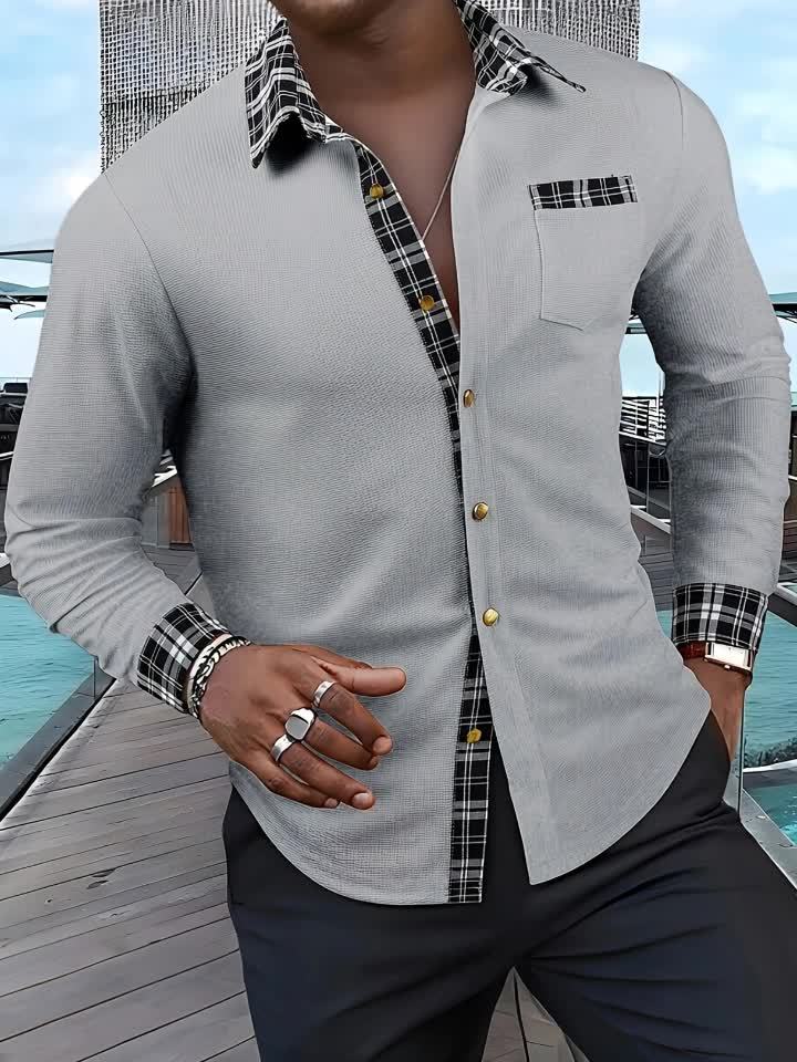 Men's Textured Waffle Knit Button-Up Long Sleeve Outdoor Casual Shirt, Breathable Fabric, Machine Washable, Suitable for Outdoors, Festivals & Office Wear, Multi-Purpose Clothing, Quality Material, Lightweight, Durable Structure, Trendy Men's Fashion
