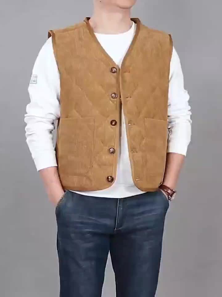 [Winter Warmth Vest] Navy Blue Quilted Corduroy Men's Winter Warmth Vest | Fleece Lining, Pockets, Button Closure | Perfect for Fall and Winter Comfort